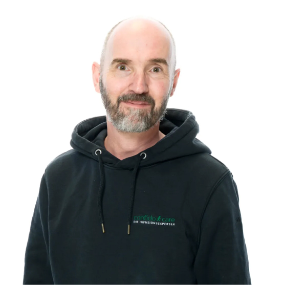 Karins Patienten schätzen sie als kompetente und empathische Ansprechpartnerin rund um die Infusionstherapie. Ihr Spezialgebiet ist die Versorgung von Patienten mit Ileo-Stoma – hier steht sie sowohl Patienten als auch Ärzten mit vollem Fachwissen zur Seite.